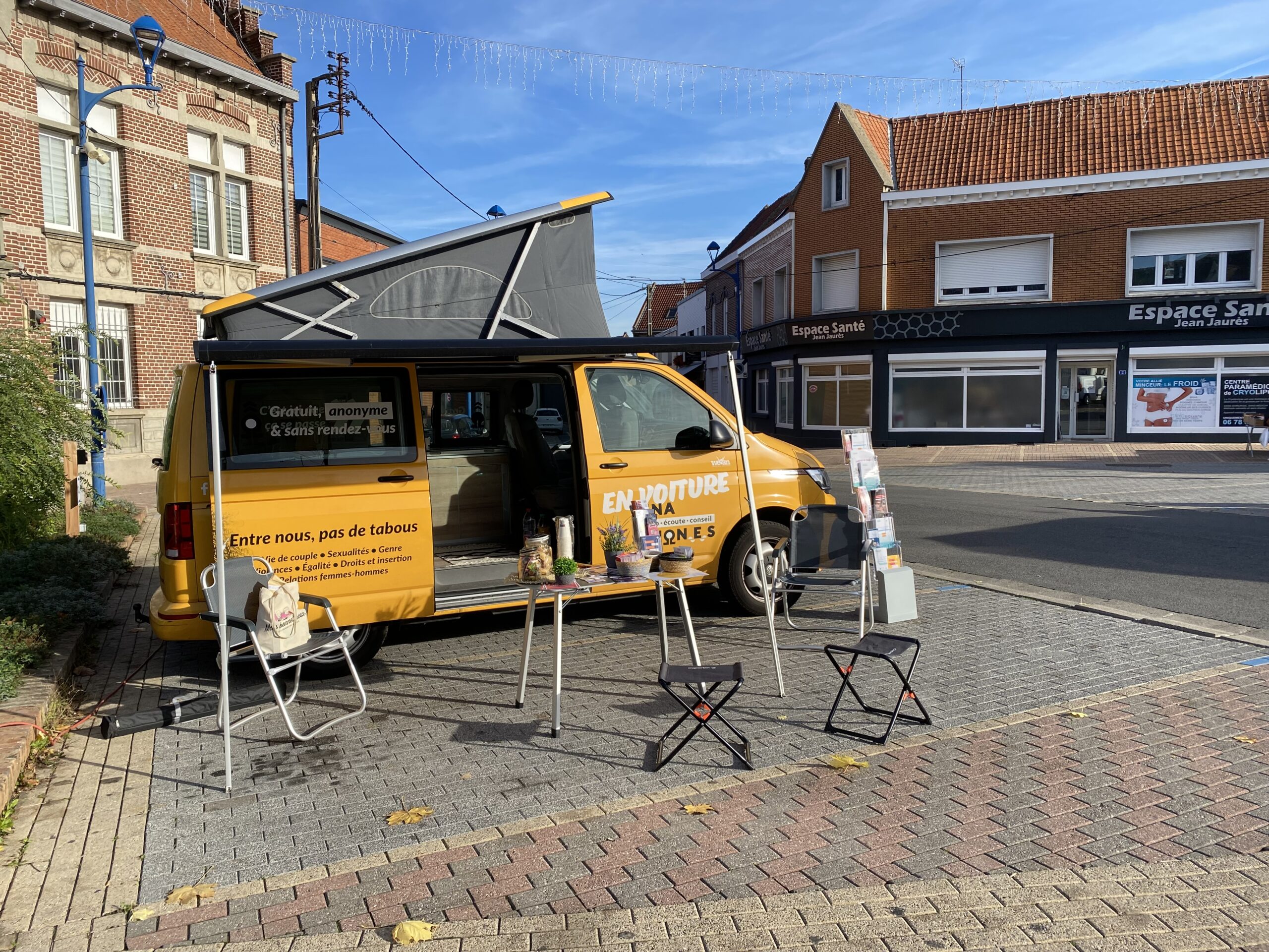Depuis 2022, une travailleuse sociale se déplace dans tout le Pas-de-Calais. Son objectif est d’aller vers le public, leur apporter un accueil, une écoute et des informations autour de nombreuses thématiques : les violences, la sexualité, l’égalité, le genre, l’insertion, etc… En Voiture Nina et Simon.e.s vous propose d’intervenir dans votre collectivité pour permettre à vos administrés (de tout âge et de tout genre) de parler librement à un professionnel et d’être orientés en fonction de leur problématique.