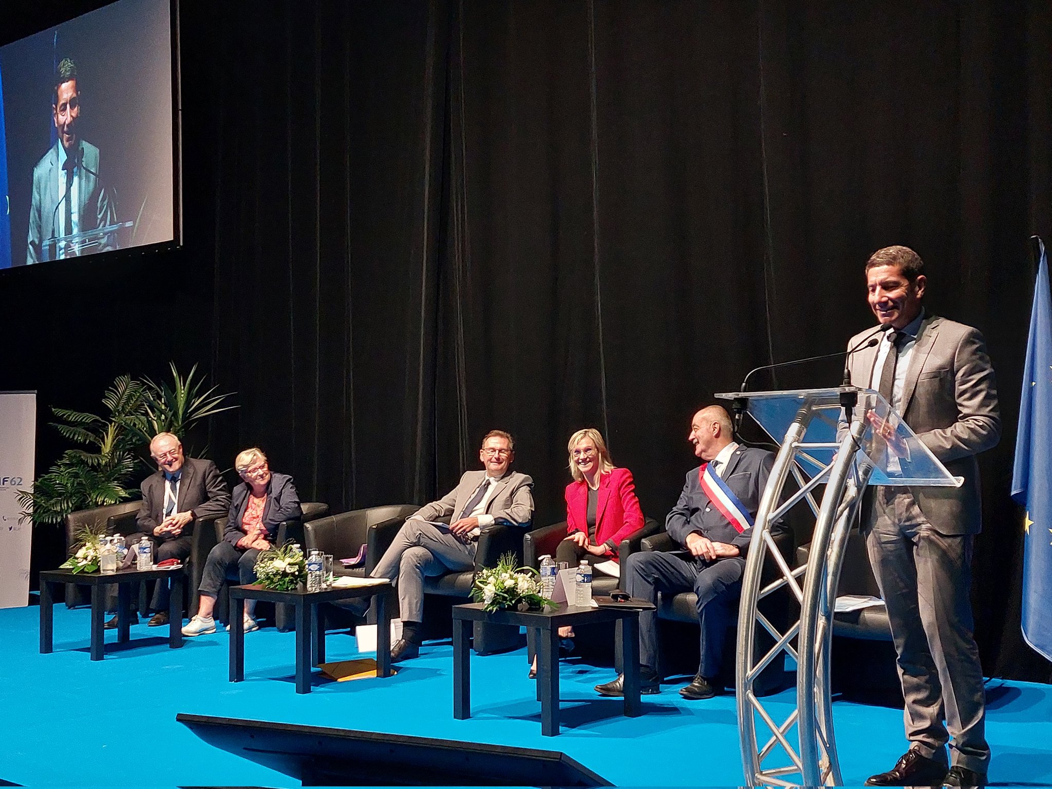 La 8ème Journée des Maires et des Présidents d’Intercommunalité du Pas-de-Calais qui s’est déroulée le 5 octobre dernier à Scénéo-Longuenesse et a réuni 730 participants, a débuté par la traditionnelle Assemblée Générale de l’AMF62. L’occasion de présenter les rapports d’activité et financier de l’Association, mais également d’accueillir Agnès Pannier-Runacher, Ministre de la Transition Energétique, et David Lisnard, Président de l’AMF.