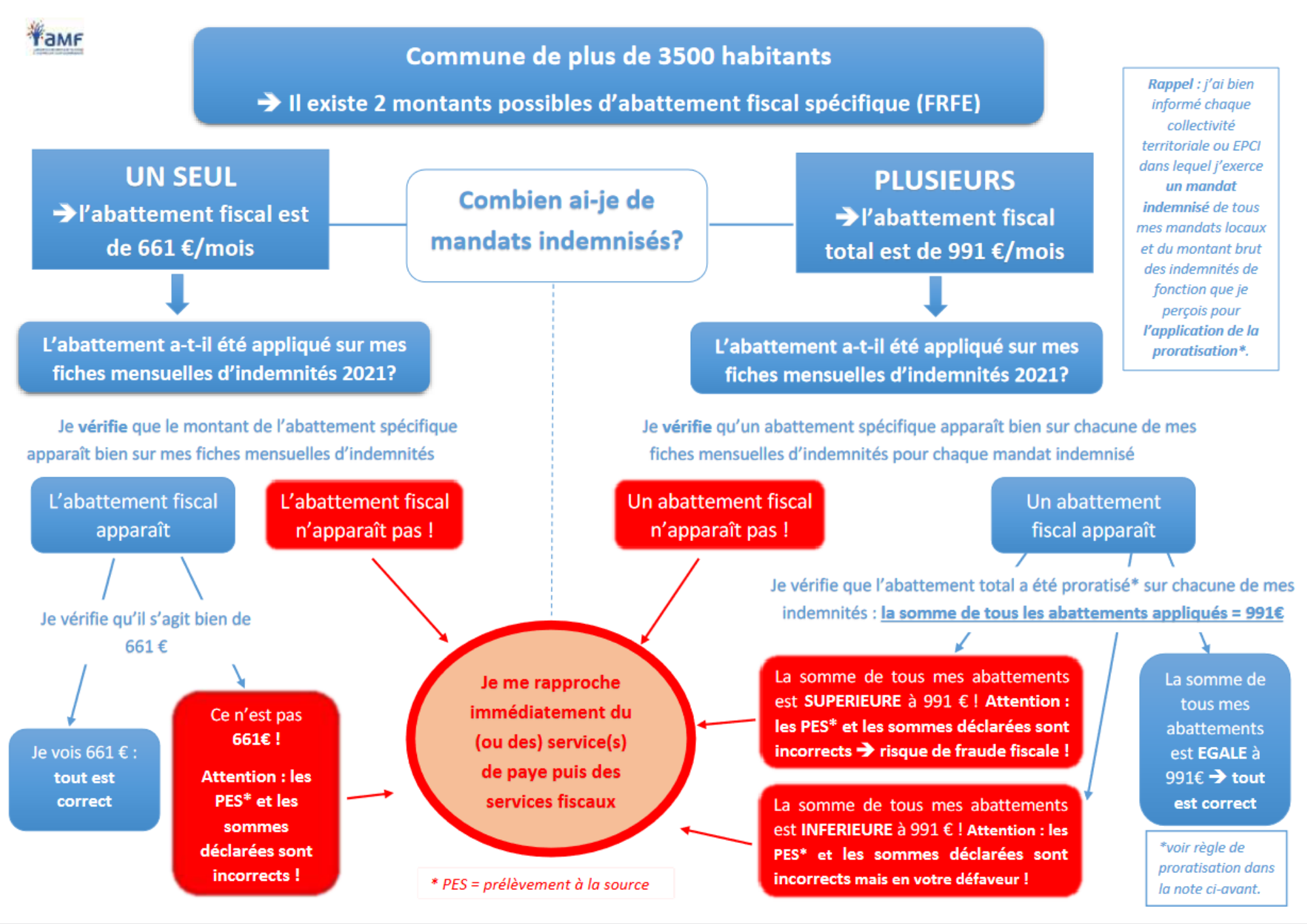 En cas de mandats multiples, le montant de la FRFE a du être réparti proportionnellement sur chacune des indemnités perçues. Cela suppose que l’élu(e) ait informé les différents services des collectivités et EPCI des indemnités perçues. Si cette proratisation n’a pas été faite, les montants d’abattements se cumulent, ce qui peut être considéré comme de la fraude fiscale.