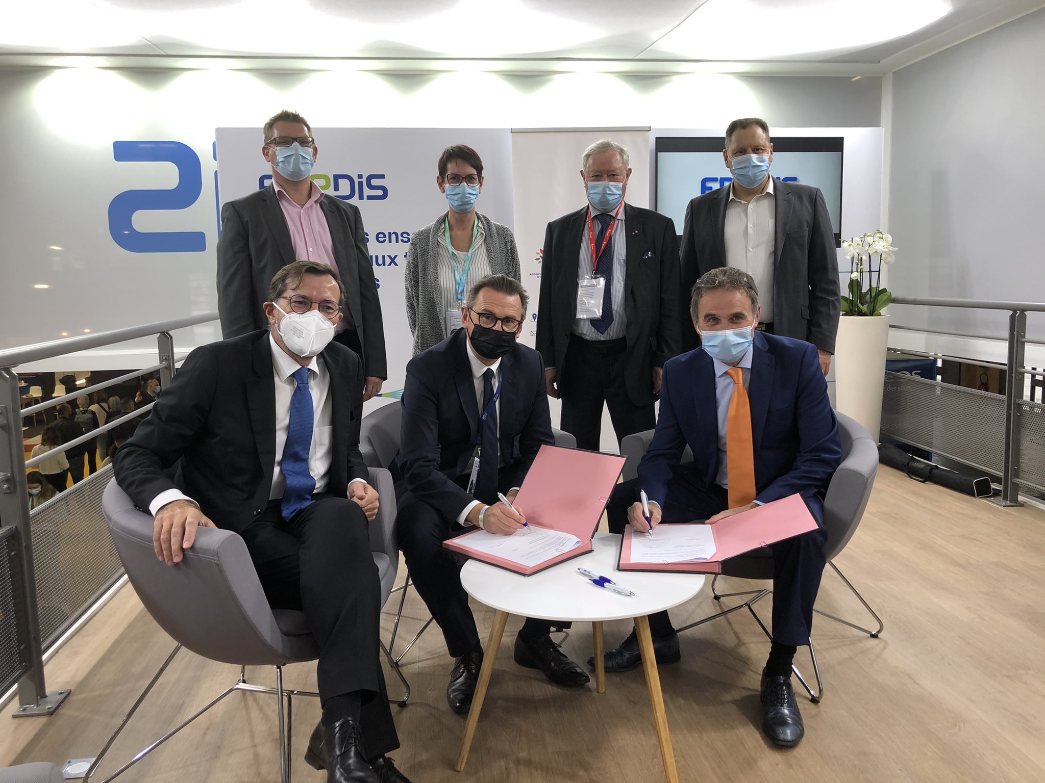 Sur le Salon des Maires et des Collectivités Locales attenant au Congrès, Frédéric LETURQUE, Président de l’AMF62, et Thierry PAGES, Directeur Régional d’Enedis Hauts-de-France, ont signé une convention de partenariat en faveur de l’information des adhérents de l’AMF62 sur les questions de distribution publique d’électricité.