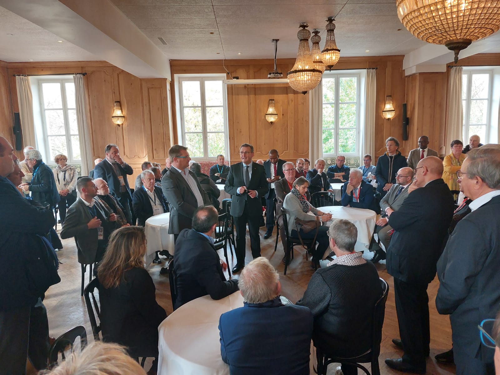 Le traditionnel cocktail organisé par l’AMF62 en partenariat avec Enedis a réuni plus de 100 élus du Pas-de-Calais, maires, adjoints, présidents d’intercommunalité et parlementaires. Un moment fort de la vie de notre association qui a débuté par un hommage à Ludovic Montuelle, inspecteur des finances publiques sauvagement assassiné à Bullecourt quelques jours plus tôt. Agnès Pannier-Runacher, Ministre de la Transition Énergétique, nous a ensuite fait l’honneur de sa présence et rappelé l’importance de l’implication des communes dans la transition énergétique.