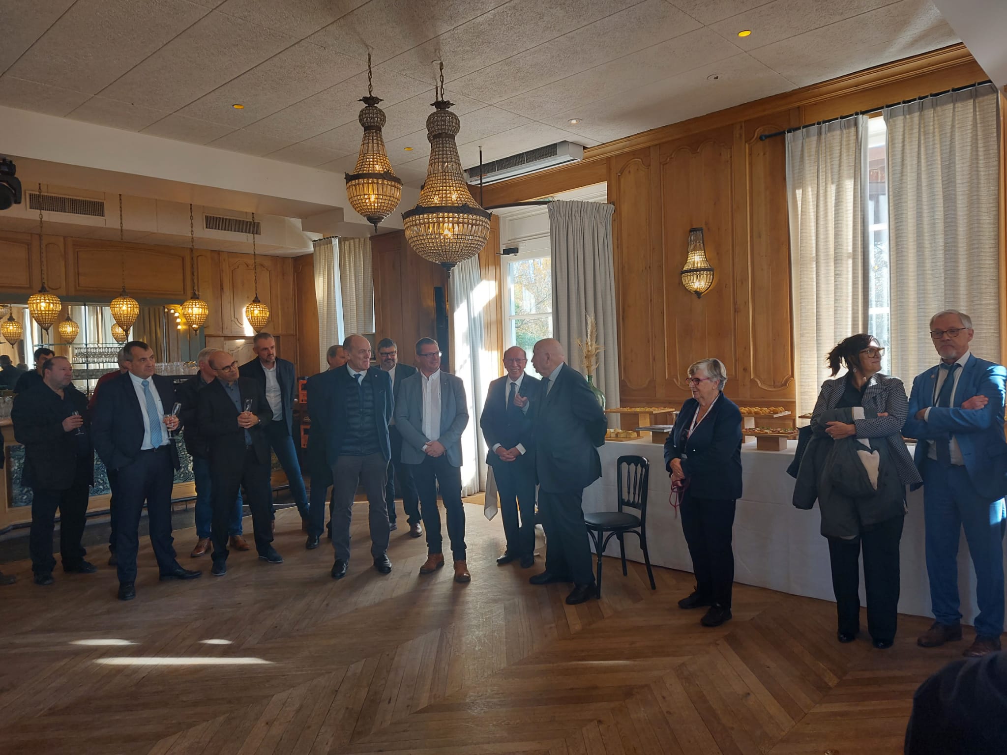 Le traditionnel cocktail organisé par l’AMF62, en partenariat avec Enedis, Engie et GRDF, a réuni plus de 100 élus du Pas-de-Calais, maires, adjoints, présidents d’intercommunalité et parlementaires au Restaurant L’Ile, à Issy-les-Moulineaux. Un moment fort de la vie de notre association lors duquel André Santini, Maire d’Issy-les-Moulineaux, ancien ministre, nous a fait l’honneur de sa présence. Il a notamment rendu un hommage appuyé aux maires et apporté son soutien aux victimes des récentes inondations.